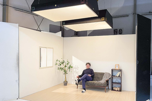 たとえば、家具やラグなどの大きな商品の場合は、天井高と奥行きのある大型スタジオを使用。